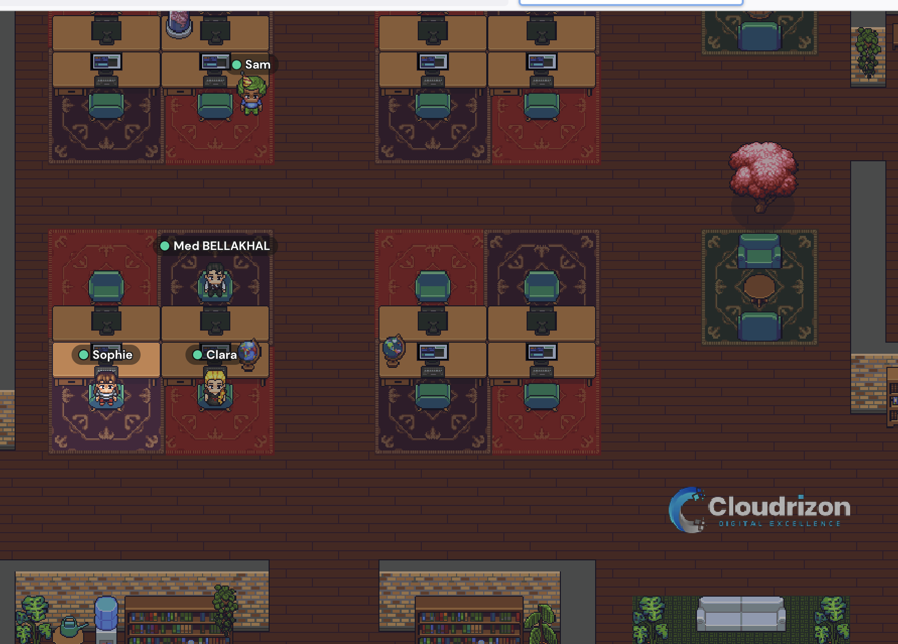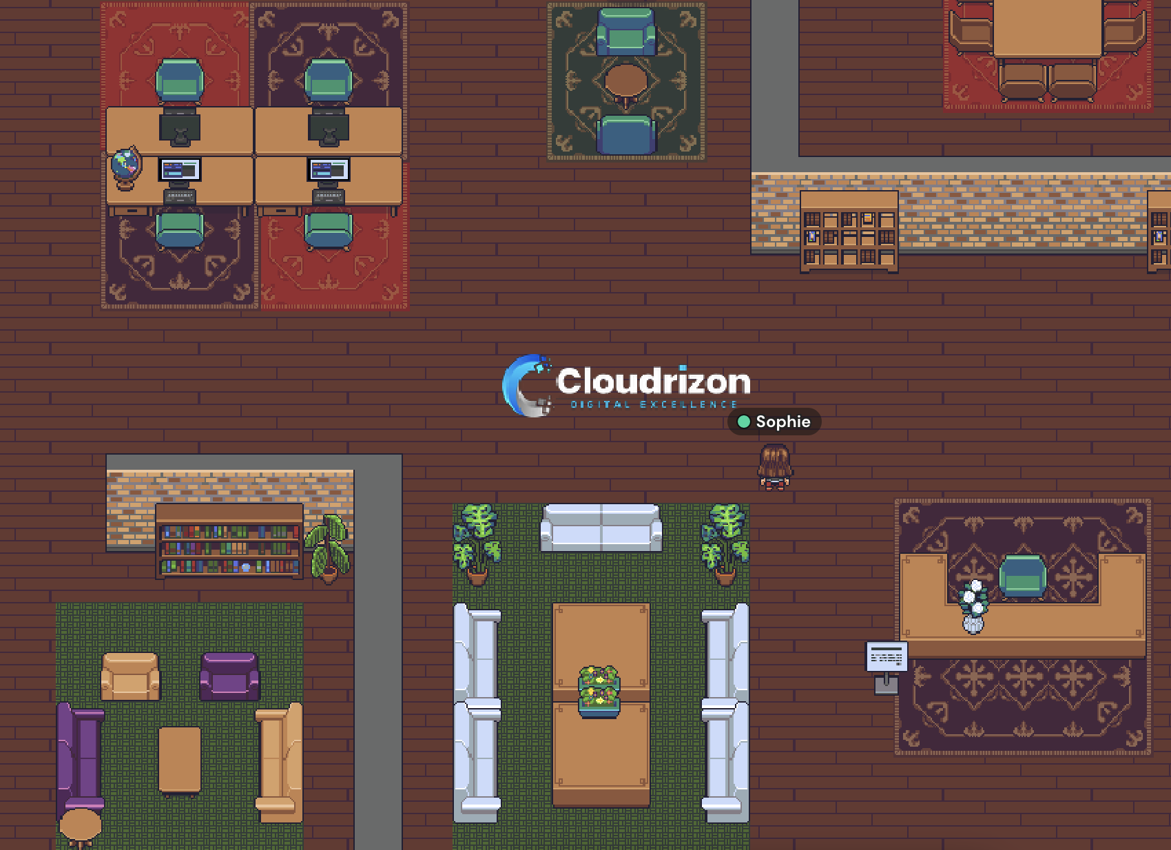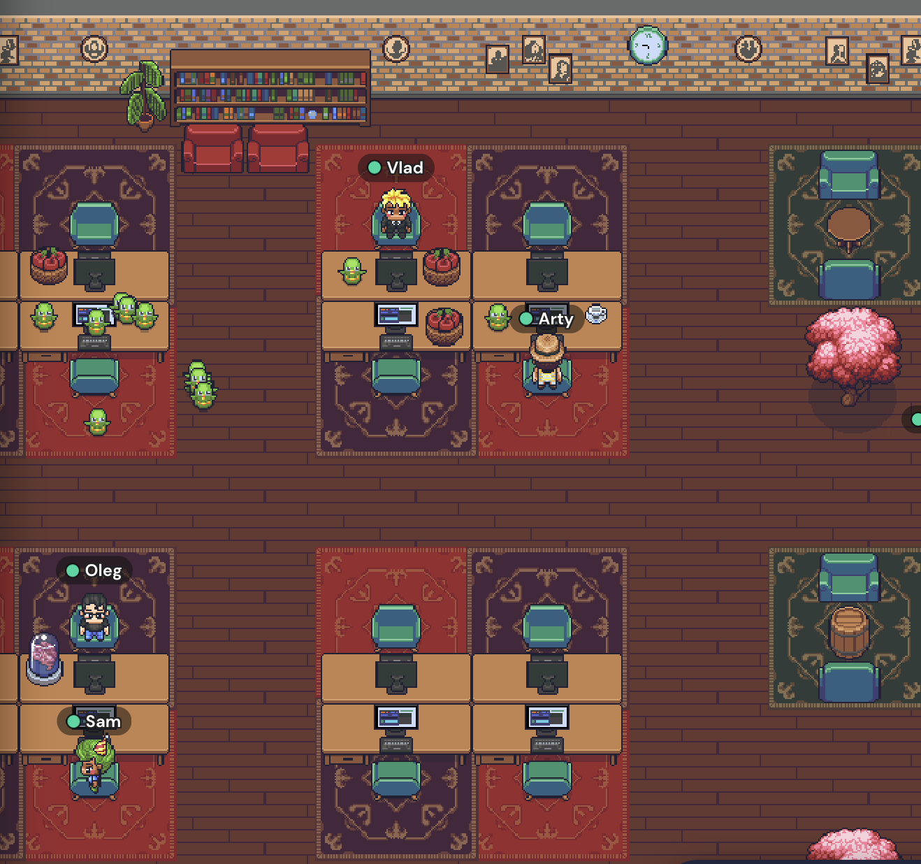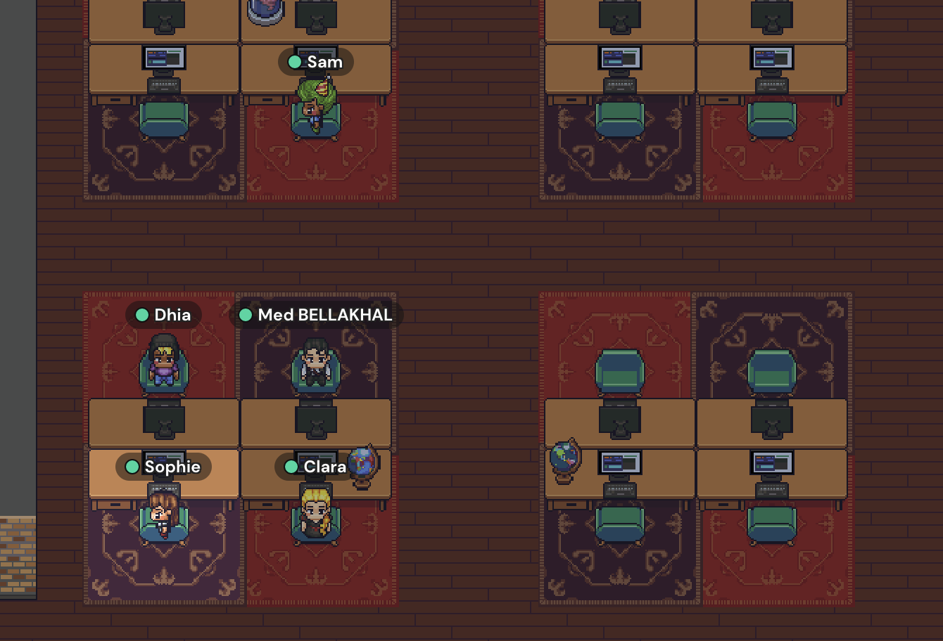 Wir bieten unserem Team völlige Standortfreiheit. Sie können von jedem Ort der Welt aus arbeiten. Für die Kommunikation mit dem Team nutzen wir Gather.Town, wo jeder Mitarbeiter seinen eigenen Arbeitsplatz hat und frei mit Kollegen kommunizieren kann.